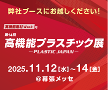11月12日(水)より幕張メッセで開催される素材技術の総合展、高機能素材Week内の「高機能プラスチック展」に出展いたします。詳細は、以下のとおりです。