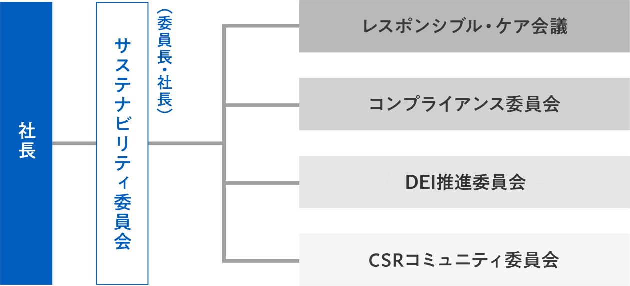 サステナビリティ委員会の中核委員会として、DEI推進委員会を設置し、多様な人材が互いの人権と尊厳を尊重し合い、公平で働きがいのある職場環境の実現を目指しています。