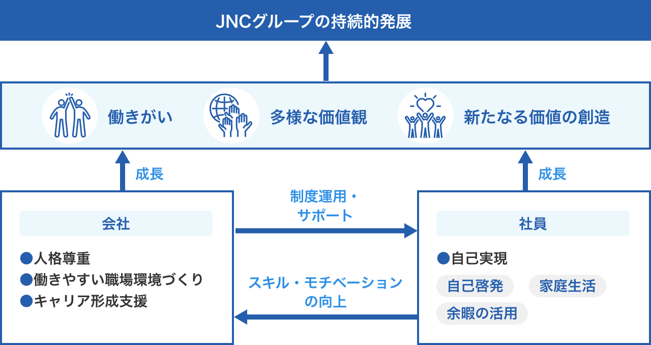 JNCグループは、DEI(Diversity, Equity & Inclusion)の推進を、持続的な成長と企業価値向上のための重要な基盤と位置付けています。私たちは、多様性を尊重し、すべての人が公平に活躍できる環境づくりを目指すという明確な理念のもと、グループ一丸となって取り組みを進めています。
